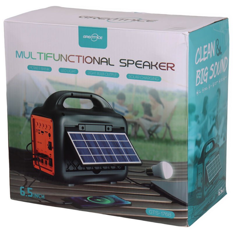 اسپیکر گریت نایس|GTS_1768|چندکاره|پاوربانک،چراغ قوه،میکروفون|دارای پنل خورشیدی